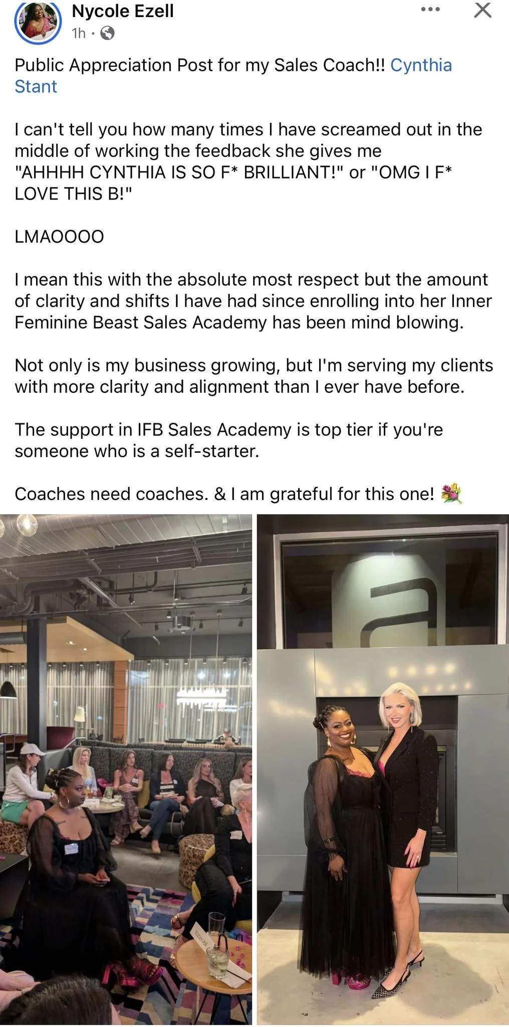 💎 Hosted her first paid masterclass ($97 entry) that brought in thousands in sales and enrolled multiple clients into her brand-new consulting program
